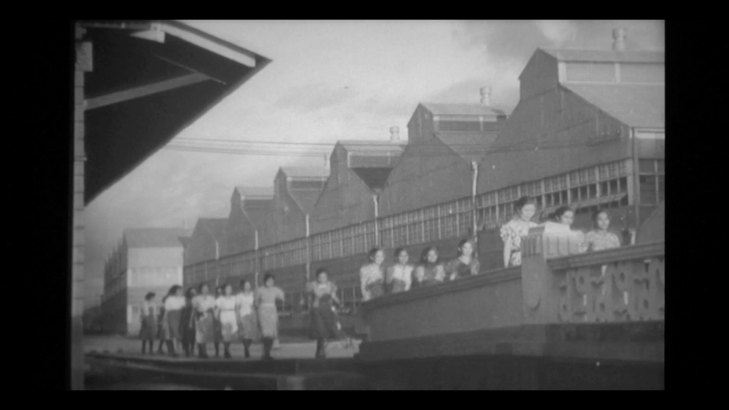 A soundscape of sloshing waves, seabirds and slicing knives sets the backdrop for a mirage of hidden desires. Close-up shots of women smiling are juxtaposed with hands sensuously kneading dough to violently cleaning and slicing tuna along an assembly line. Bouncing between warm and cool tones, this abstract blend of found footage scenery of prewar cannery workers in San Diego functions as a queer meditation on the Japanese American women who engaged in same sex intimacy while the men were off at sea.