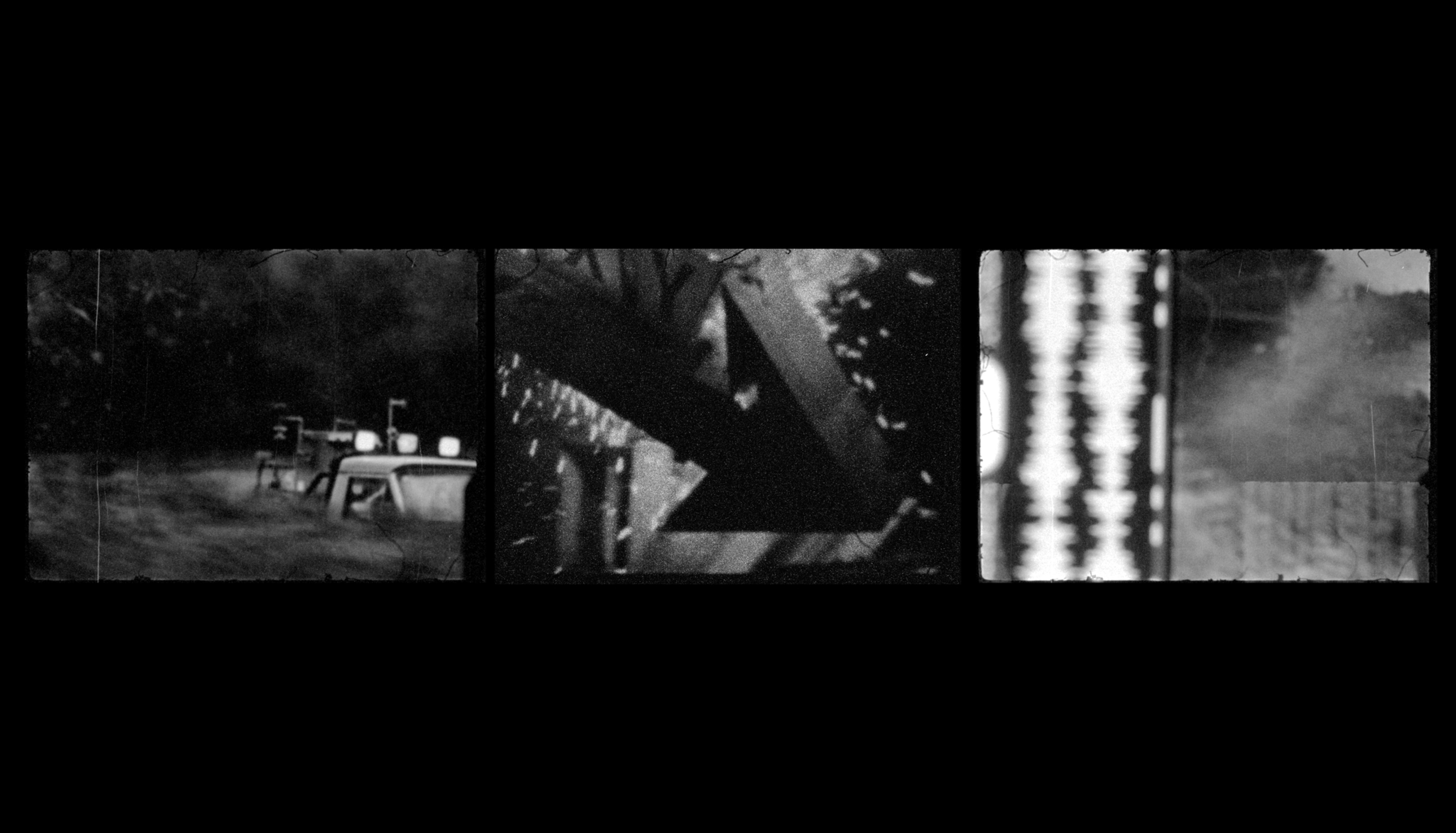 In 1996, a screening of the American action film Twister by Jan de Bont, initially scheduled at the Can-View Drive-in in southern Canada was canceled due to a tornado warning. Throughout The Following Images Never Happened,French artist Noé Grenier gathers fragments from the film’s trailer that strangely appear to be physically marked by the wind and scratched by the heavy rain. Dividing the screen into three parts, he gives shape to the imaginative visions some spectators had after thinking they attended the screening in the middle of the storm.